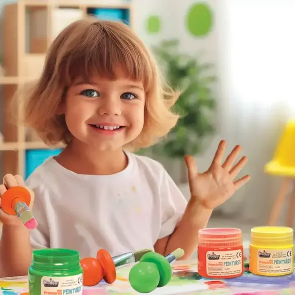 Elles sont prêtes à l'emploi et ne coulent pas. Contient 4 pots de 80 ml de peinture rouge, verte, bleue et jaune.