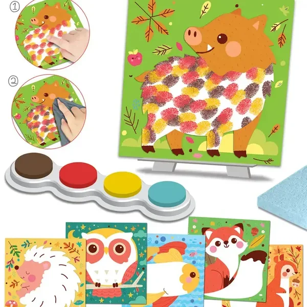 Un coffret qui permettra aux tout petits de peindre facilement avec leurs doigts ! Une fois les tableaux terminés, ils pourront les exposer sur le joli chevalet fourni. La peinture est lavable et ne coule pas.