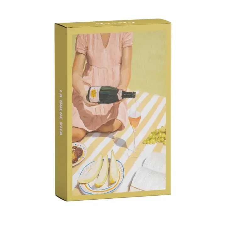 - 99 pièces - Taille du puzzle : 10 x 14 cm - Taille de la boîte : 9 x 6 x 2 cm - Emballé sans plastique dans une boîte en carton - Puzzle en carton recyclé - Fabriqué en Turquie - Illustré par Ieva Noula Profitez de la légèreté de la vie avec le mini-puzzle La Dolce Vita de 99 pièces. Une femme en pique-nique avec du champagne, des fruits et un bon livre - pure détente et plaisir. Parfait pour des moments créatifs ou comme cadeau pour tous ceux qui aiment profiter pleinement de la vie. Illustré par Ieva Noula alias Evanou.
